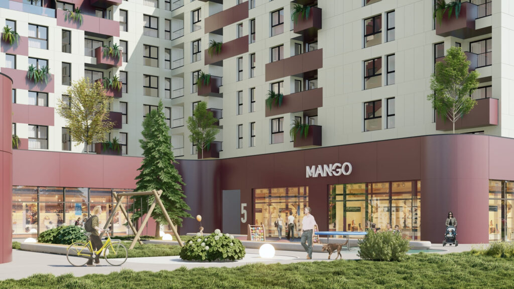 KATI PËRDHE (hapësira tregtare) ka një sipërfaqe prej 8,000m2 të ndarë në katër blloqe, të cilat janë pjesë përbërëse e Kompleksit Premiere Residence.